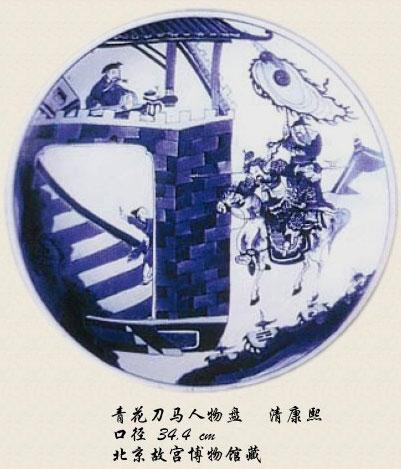 康熙瓷器上的刀马人物、战争场面非常流行,俗称"刀马人",典型的故事有《三国》、《水浒》。瓷器上画这种战争题材,从侧面反映出满族拿下江山不是轻而易举的,也是通过几代人的努力。在康熙前期的瓷器上看不到歌舞升平的场面,比如"百子龙灯"、"狮子绣球",画的都是战争场面,这跟我们建国初期一样。早年拍的电影,《地道战》、《地雷战》、《南征北战》,都是战争题材的片子。等拍《甜蜜的事业》的时候是1979年,建国三十年了。岁数大一点的人,都知道《甜蜜的事业》这部电影,主题歌叫《我们的生活充满阳光》。那么,等康熙那时候的生活充满阳光了,才在瓷器上画"狮子绣球"之类的喜庆纹饰,一开始绝对不画,这是政治对艺术的直接影响。