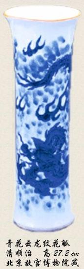 顺治青花有一个典型的对龙的绘法,只有这一朝这么画,叫"一身三现"。所谓"一身三现",就是画一个龙头,画一段龙身,画一条龙尾,中间的地方都是云彩,好像一条龙被云彩遮挡,露出三段,叫一身三现。也有一身五现、一身七现,我还见过有一身九现的,但一定是单数。当时的这种绘法,是对龙纹的一种理解,这种理解多少跟政治也有点儿沾边儿。当时的政治不是很明朗,龙纹就表现得若隐若现;不像后来清朝坐稳了天下,龙纹就全部展现在你的眼前了。