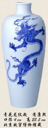 康熙把国家治理得井井有条,同时,也把瓷器生产治理得井井有条。早期的康熙青花是官民不分,后期逐渐形成定式,官窑的形式就受到了限制。官窑跟民窑不一样,民窑都是老百姓的事,自己想怎么烧就怎么烧,怎么能卖得好怎么烧。官窑不行,官窑要由官方定一个制式,必须按照这个制式烧出来。比如康熙晚期的龙凤纹就非常规范了,一看就是这个时期的瓷器,龙的身子怎么弯,须画多长,基本上都成了定式。民窑瓷器很多反映百姓生活的追求,而官窑中反映百姓生活的就逐渐减少了。